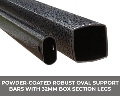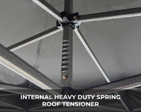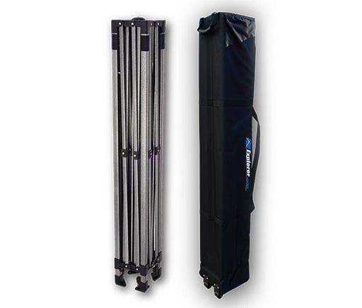 Constructed with robust oval support bars and 32mm robust oval support bars and 32mm steel box section legs, the Explorer Pop Up Gazebo guarantees exceptional strength and stability at a competitive price. Its covers are made from premium 420D polyester with a PVC backing, ensuring 100% waterproof protection for reliable use in diverse weather conditions.